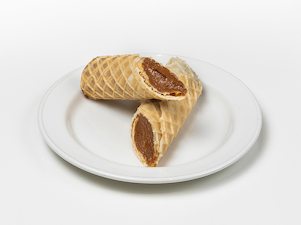 Вафельная трубочка, заполненная варённой сгущенкой.