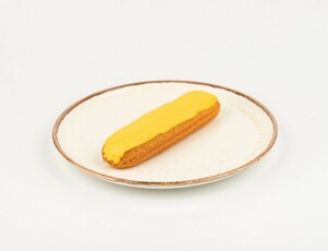 Заварное тесто с начинкой из масляного крема с добавлением пасты маракуйя, покрывается глазурью