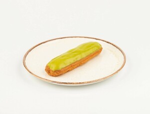 Заварное тесто с начинкой из масляного кремом с добавлением фисташковой пасты, покрывается фисташковой глазурью, посыпается мелко порубленным фисташковым орехом.