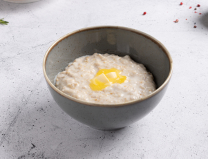 Каша овсяная на классическом молоке (3.2%) с добавлением сливочного масла, сахара, соли. Можем приготовить на воде.