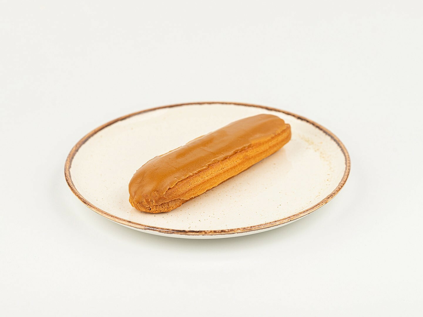 Заварное тесто с начинкой из масляного крема с добавлением кофейной пасты, покрывается кофейной глазурью и кофейными зернами.